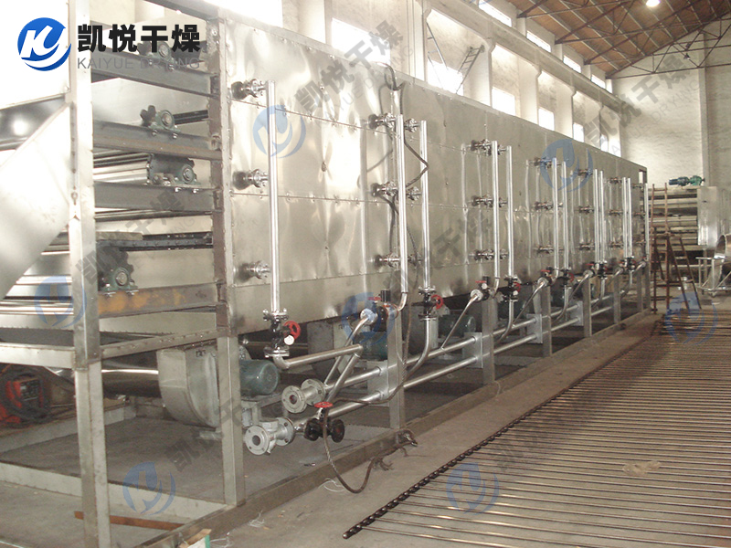 DW系列多层带式干燥机是成批生产用的连续式干燥设备,用于透气性较好的片状、条状、颗粒状物料的干燥,对于脱水蔬菜、催化剂、中药饮片等类含水率高、而温度不允许高的物料尤为合适;该系列干燥机具有干燥速度快、蒸发强度高、产品质量好的优点,对脱水滤饼状的膏状物料,需经造粒或制成条状后方可干燥。