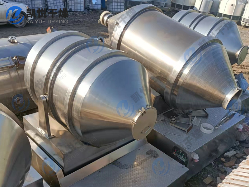 EYH系列二维运动混合机的转筒可同时进行二个运动,一个为转筒的转动,另一个为转筒随摆动架的摆动。被混合物料在转筒内随转筒转动、翻转、混合的同时,又随转筒的摆动而发生左右来回的掺混运动,在这两个运动的共同作用下,物料在短时间内得到充分的混合。EYH二维混料机适合所有粉、粒状物料的混合。