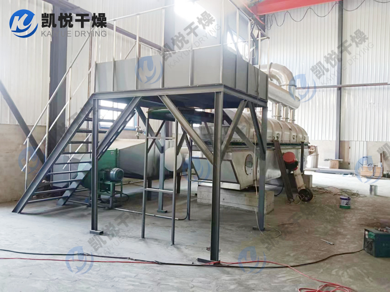 案例描述:ZLG系列振动流化床干燥机广泛适用于化工、轻工、医药、食品、塑料、粮油、矿渣、制盐、糖等行业的粉料颗粒状物料的干燥、冷却、增湿等作业。普通流化床干燥机在干燥颗粒物料时,可能会存在下述问题:(1)当颗粒粒度较小时形成沟流或死区;(2)颗粒分布范围大时夹带会相当严重;(3)由于颗粒的返混,物料在机内滞留时间不同,干燥后的颗粒含湿量不均;(4)物料湿度稍大时会产生团聚和结块现象,而使流化恶化等。为了克服上述问题,出现了数种改型流化床,其中振动流化床就是一种较为成功的改型流化床干燥机。