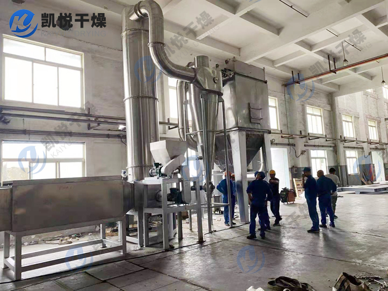 7、干燥室内周向气速高,物料停留时间短,有效防止物料粘壁及热敏性物料变质现象,达到高效、快速、小设备、大生产。